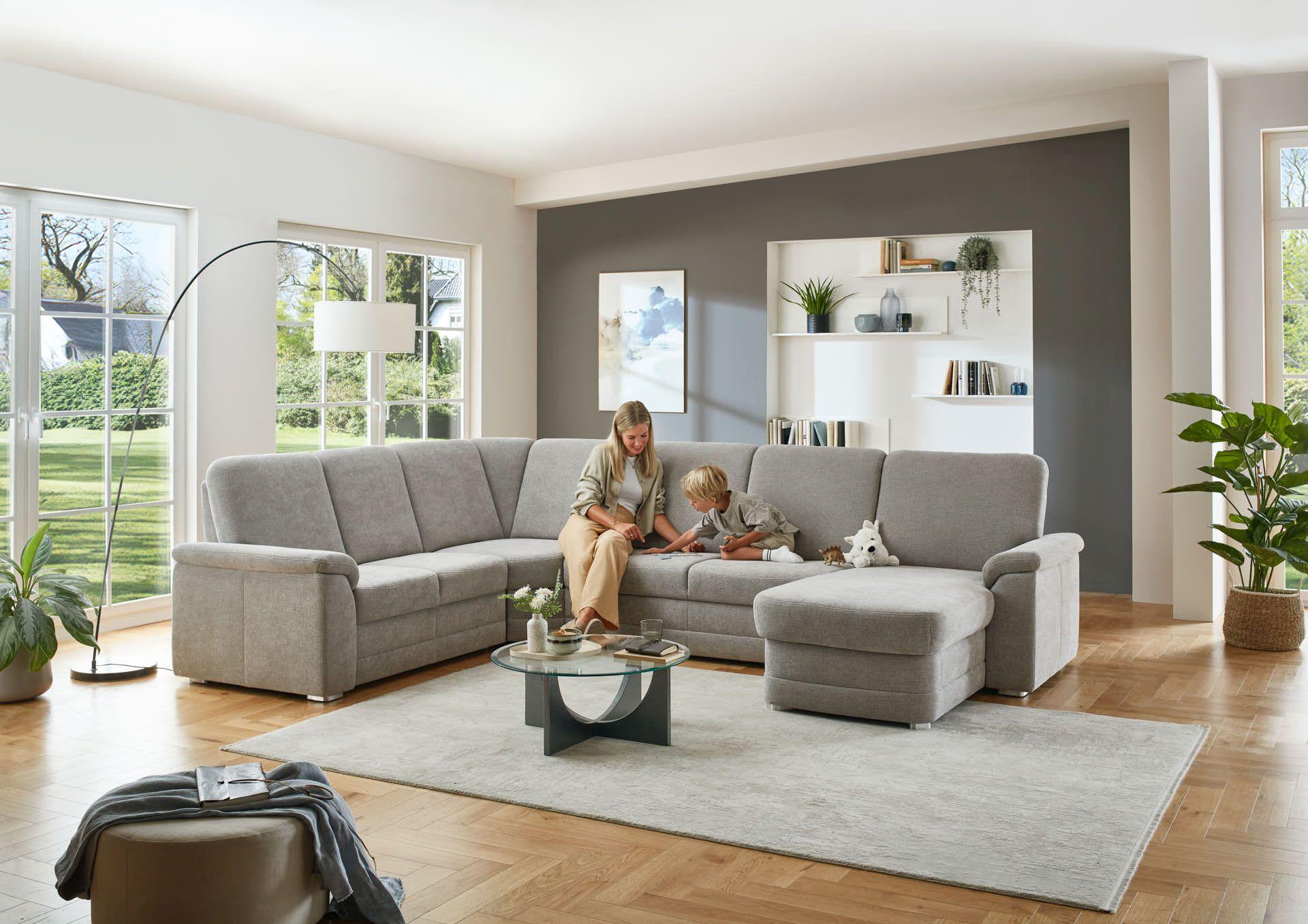 Das komfortable Sofa LS26 Flona von Polipol bringt Lebensqualität in Ihr Wohnzimmer. Bequem sitzen und entspannt das Leben genießen ist das Motto. Dieses Polster – Möbel bietet Ihnen erstklassigen Komfort. Die ansprechende Designsprache der Wohnlandschaft schmeichelt dem Auge.